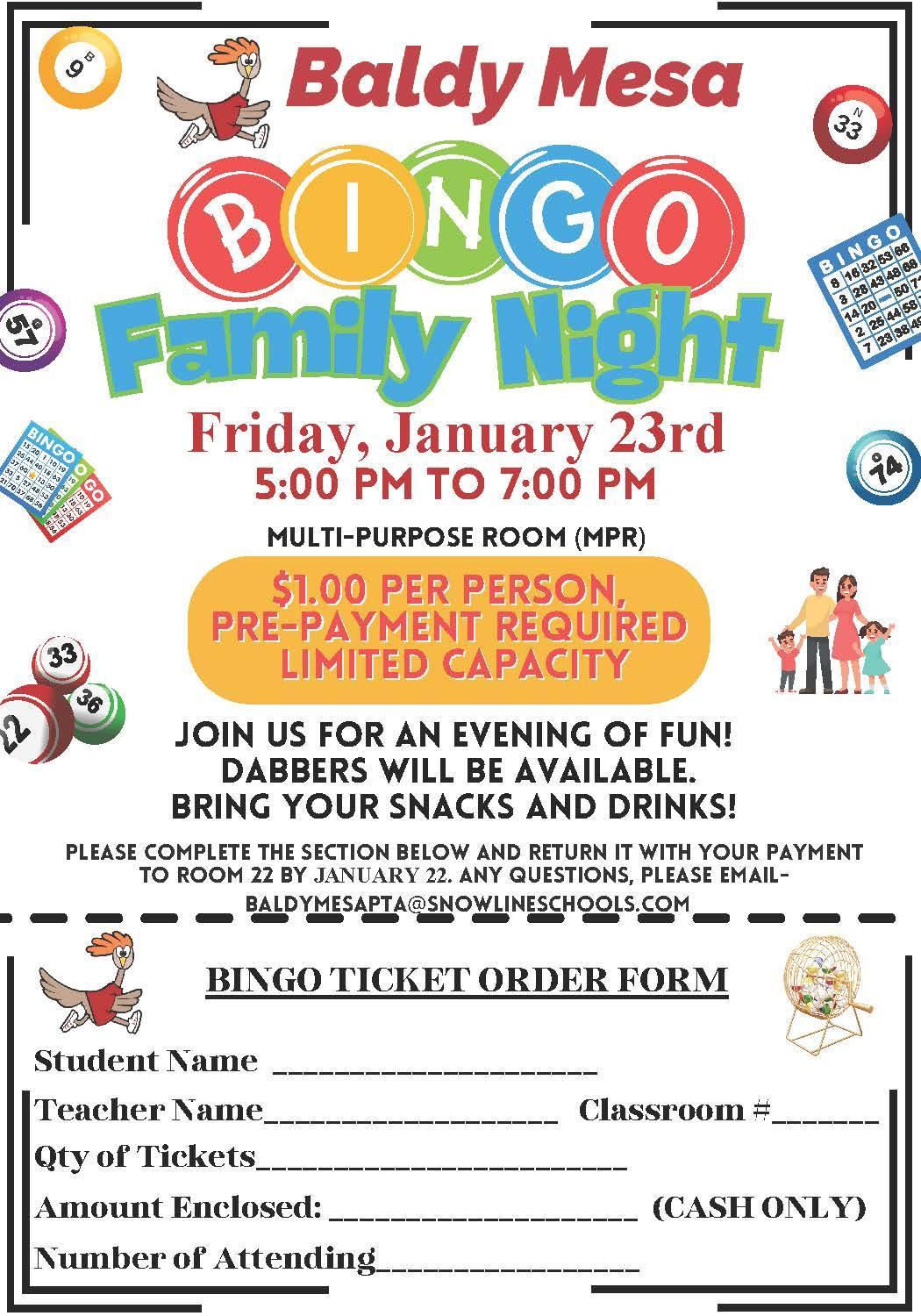 Family Bingo Night Jan 23, 5:00-7:00 PM